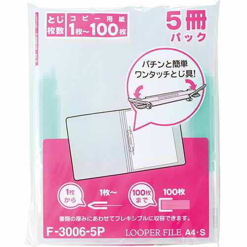 【5冊×5セット】 LIHIT LAB. ルーパーファイル A4S 2穴 緑 F-3006-5P-G・・・
