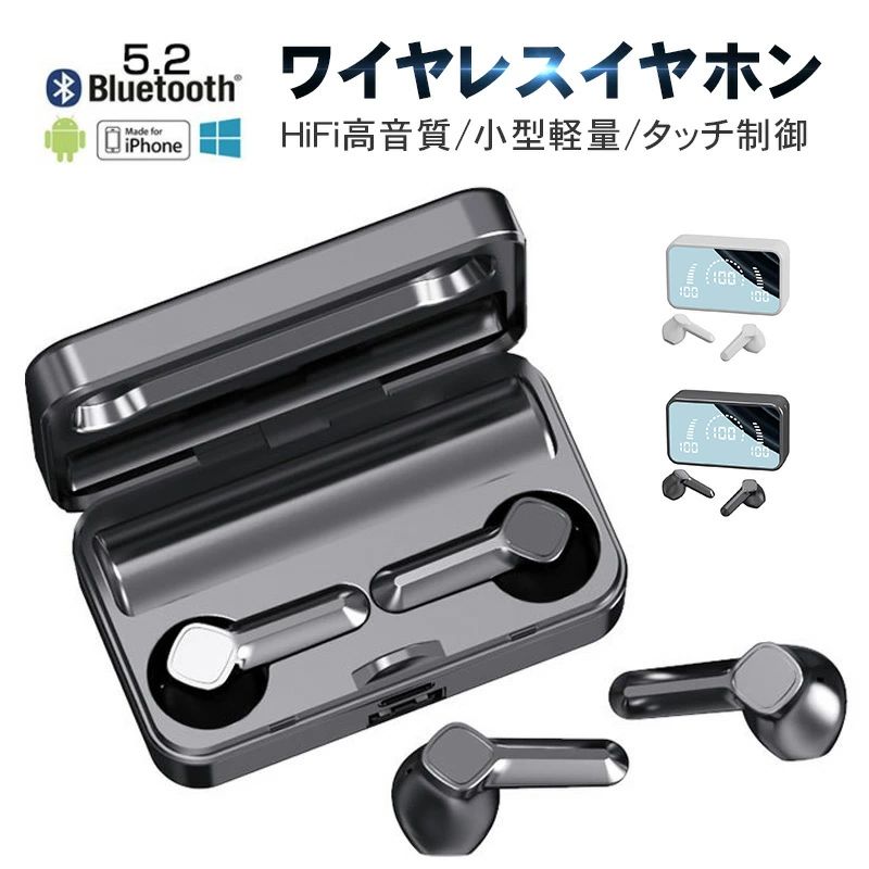 ワイヤレスイヤホン Bluetooth 5.3 超長航続 LED電量表示 HIFI高音質 片耳 両耳・・・