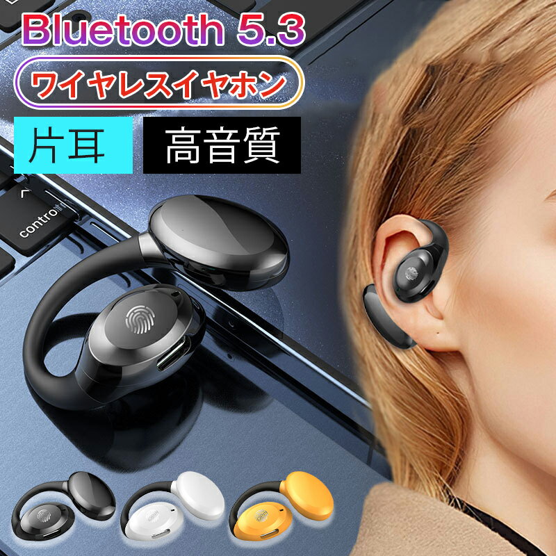 ワイヤレスイヤホン Bluetooth 5.3 片耳 イヤホン iPhone15 通話 ハンズフリー イヤフォン ワイヤレス 左耳 耳掛型 マイク内蔵 防水 プレゼント