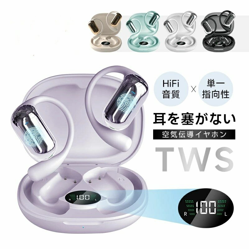 空気伝導式 IPX5防水防滴 片耳 両耳 HiFi 高音質 マイク内蔵 ENCノイズキャンセリング ハンズフリー クリア通話 Web会議 オシャレ コンパクト 高互換性 iOS/Android/Windows 多機種対応