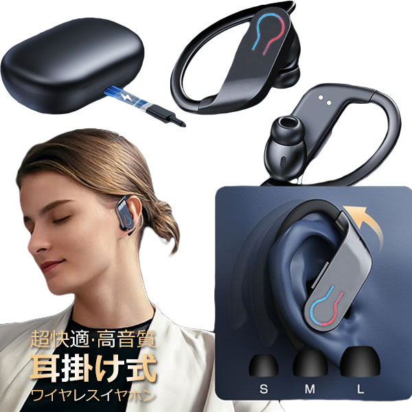 Bluetooth 5.3 耳掛け式 ワイヤレスイヤホン 10時間+70再生時間 無線 電力残量表示 AAC対応 Siri対応 落ちにくい 快適装着感
