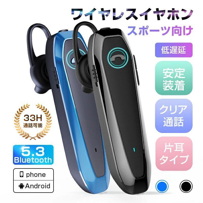 ワイヤレスイヤホン Bluetooth5.3 マイク内蔵 クリア通話 片耳タイプ 両耳兼用 高音質 超軽量 2台同時接続可能 自動ペアリング ノイズキャンセリング 持ち運び便