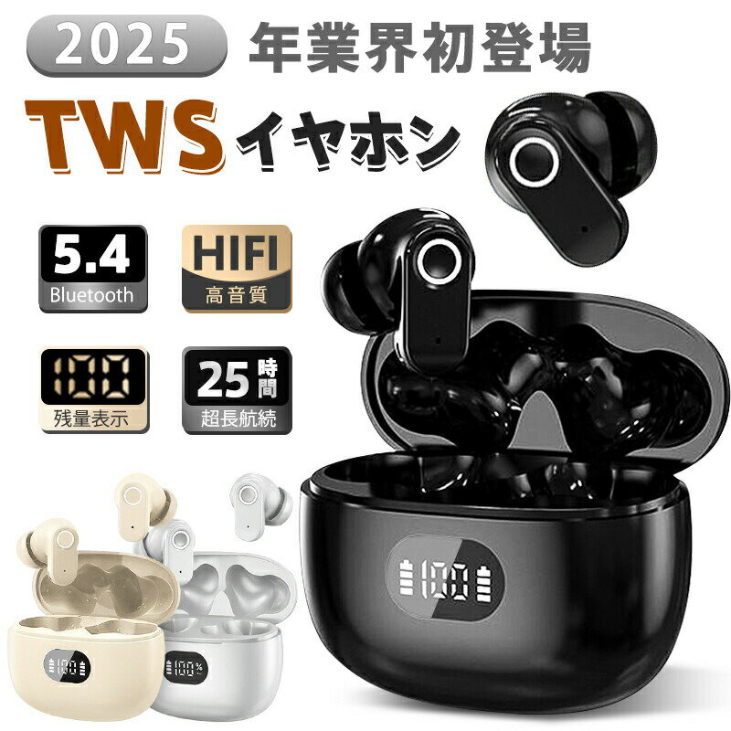 2025年新登場 Bluetooth 5.4 対応 TWS イヤホン 超低遅延ゲームモード搭載 HI・・・