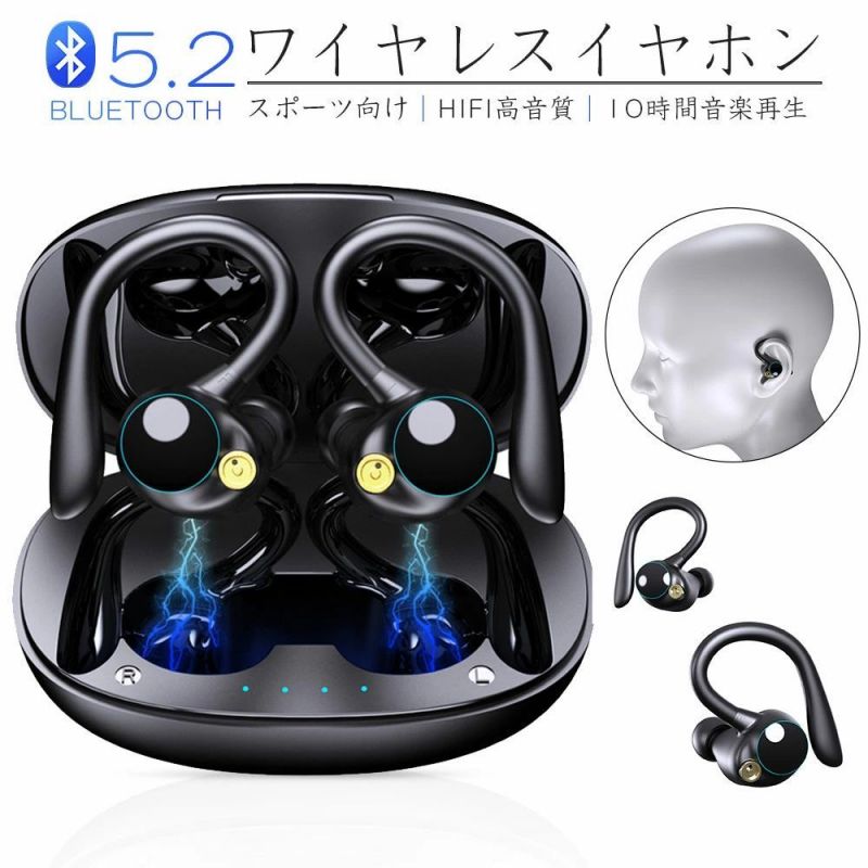 ワイヤレスイヤホン 5.2 超高音質 片耳 耳掛け型 ヘッドセット 通勤 通学 会議 運動 ワイヤレスヘッドセット 通話 音楽再生