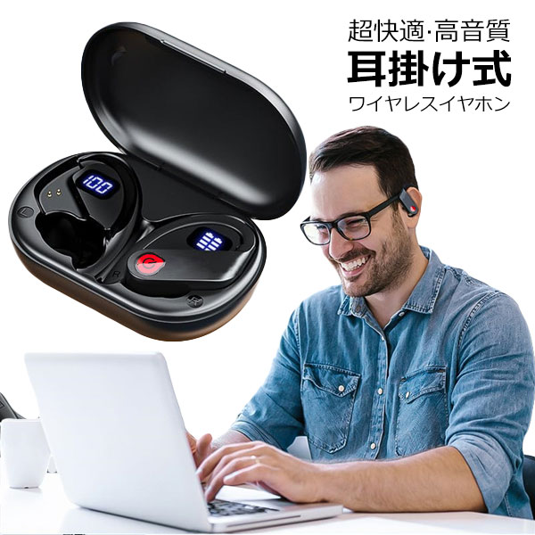 Bluetooth 5.3 耳掛け式 ワイヤレスイヤホン 10時間+70再生時間 無線 電力残量表示・・・