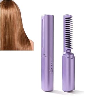 【中古】USB 充電式コードレスストレートヘアアイロンブラシ軽量でミニポータブルストレートヘアアイロ・・・