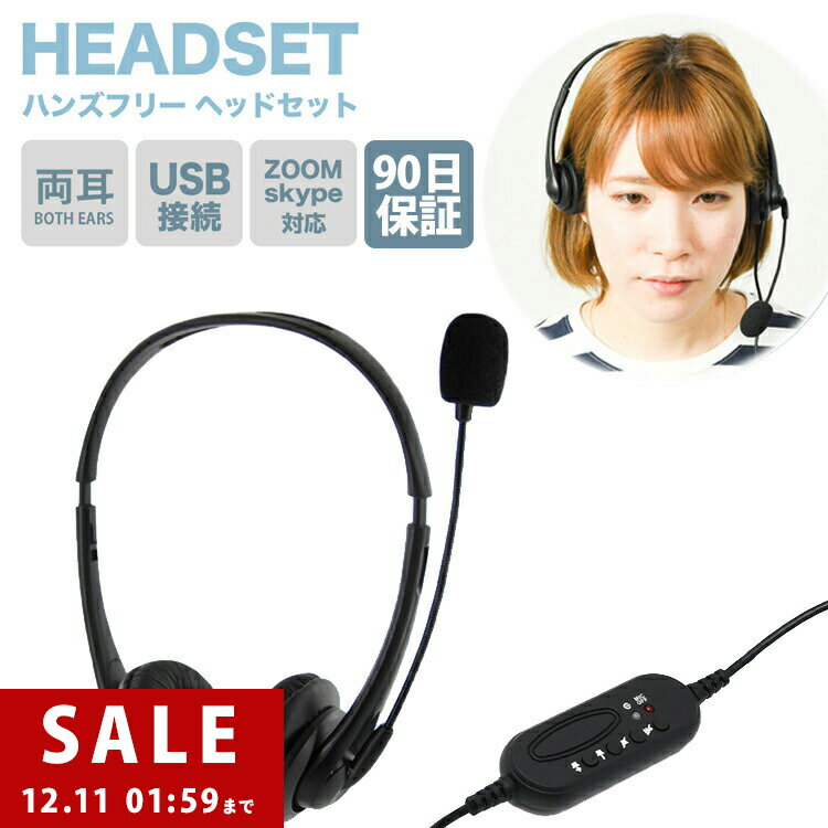 ヘッドセット 両耳 ヘッドホン マイク付き USB接続 テレワーク ZOOM スカイプ ハンズフリー・・・