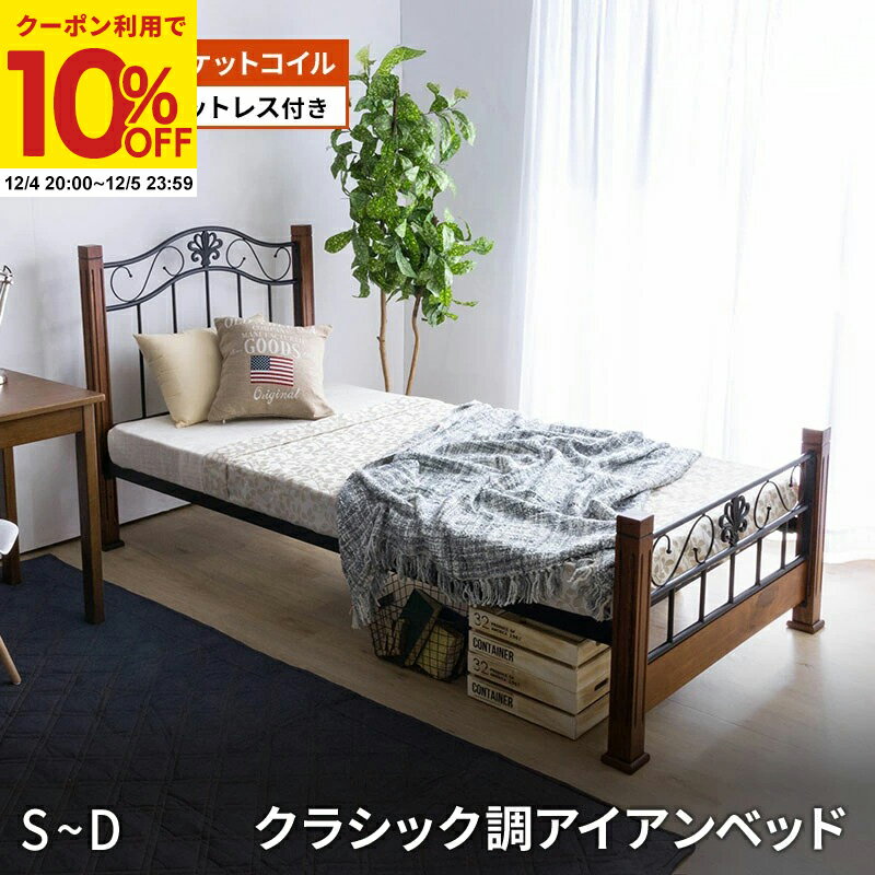 [SS数量限定]半額クーポン ベッド ベッドフレーム マットレス付き シングル セミダブル ダブル ・・・