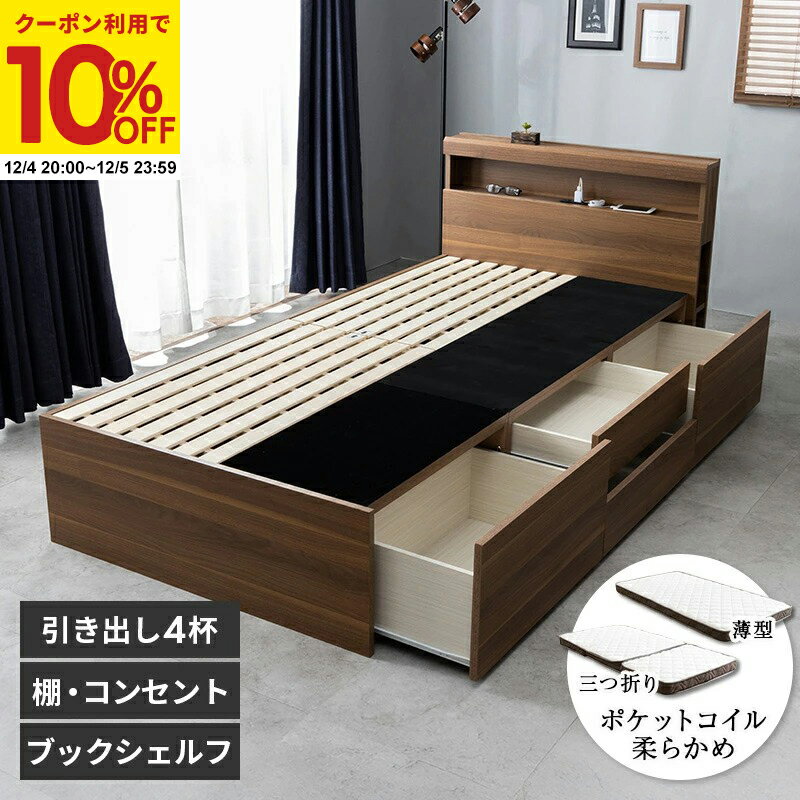 【クーポンで10%OFF★12/4 20:00〜12/5 23:59】 収納ベッド ベッド シングル・・・