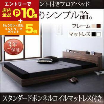 ベッド 選べる3種 マットレス付き USB・2コンセント&スマホスタンド マットレス付 宮棚付 すのこベット ローベット シングル セミダブル ダブル フロアベッド ローベッド 連結 ベット