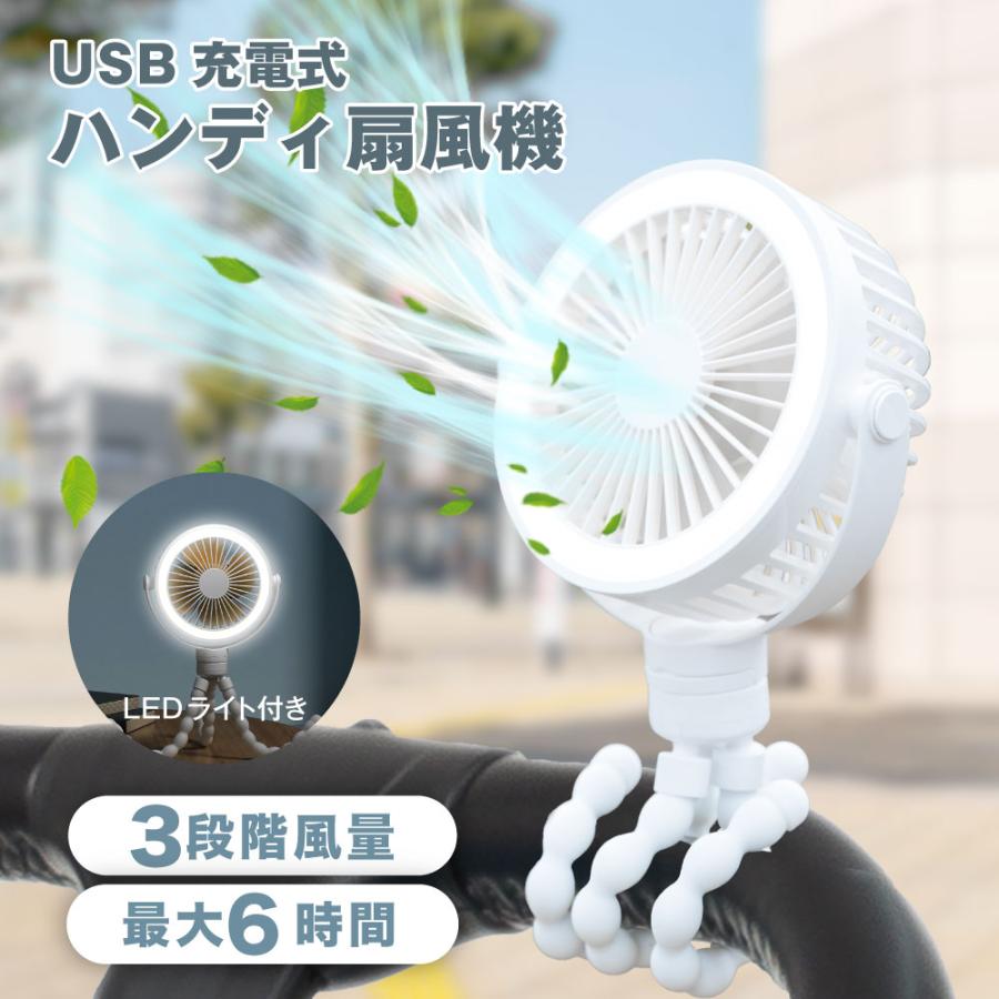 扇風機 卓上扇風機 ベビーカー 360°角度調節 LEDライト 卓上 三脚 小型 ハンディ扇風機 ハ・・・