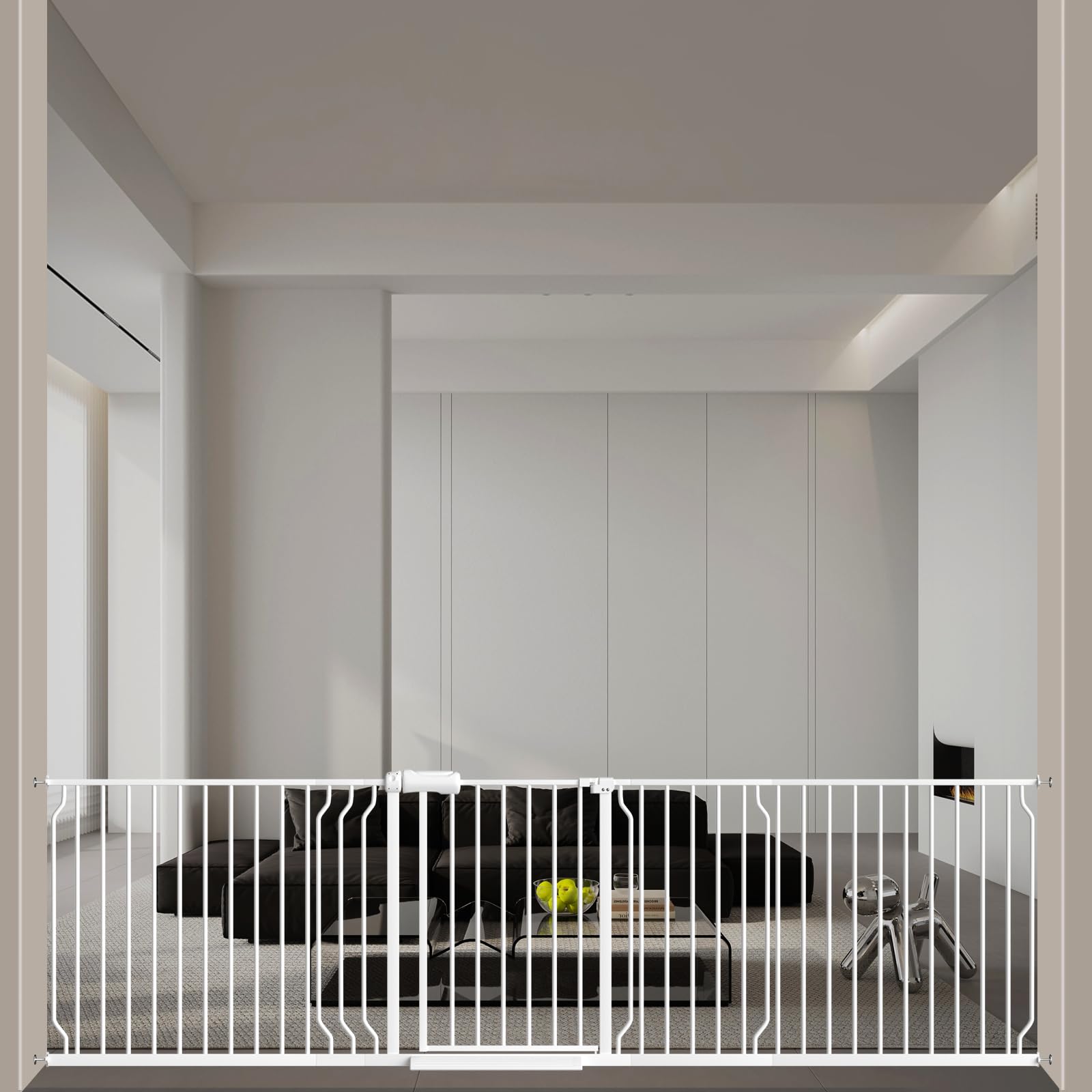 unumumベビーゲート設置幅75-134cmホワイトペットゲート犬自動ロックバリアフリーゲート階段・・・