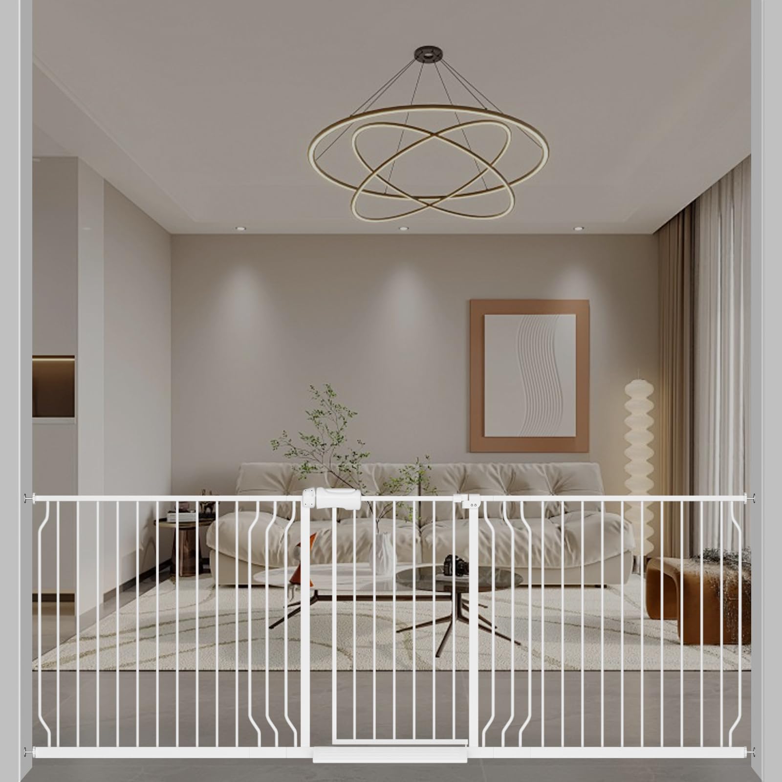 unumumベビーゲート設置幅75-110cmホワイトペットゲート犬自動ロックバリアフリーゲート階段・・・