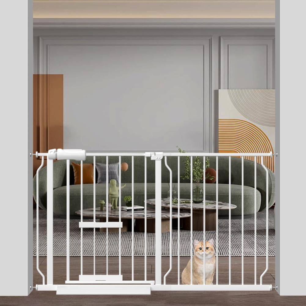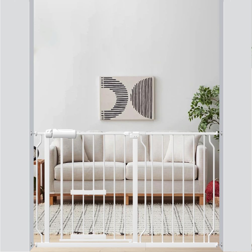 unumumベビーゲート設置幅75-134cmホワイトペットゲート犬自動ロックバリアフリーゲート階段・・・