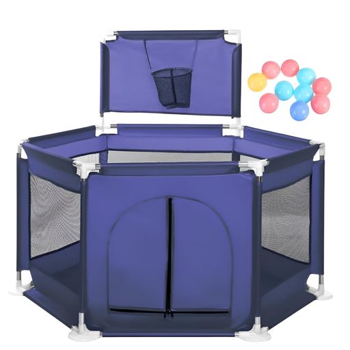 ベビーサークル メッシュ 扉付き 六角形 赤ちゃん お昼寝 おむつ替え ボールハウス 吸盤付き 子供 キッズルーム ソフトベビーサークル メッシュサークル ボール