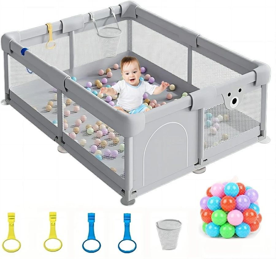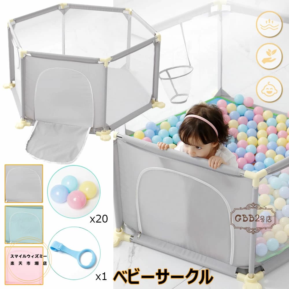 ベビーサークル メッシュ 大型 扉付き ファスナー お昼寝 組み立て式 安全 大きい 自立式 ベビーゲート ベビー フェンス サークル 滑り止め 洗濯可能 洗える 赤ちゃん ボール30個付属