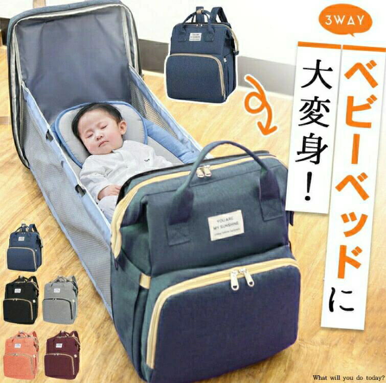 大容量 ママリュック ベビーベッド ママバッグ バックパック 赤ちゃんのベッドに変身 防水 USB充・・・