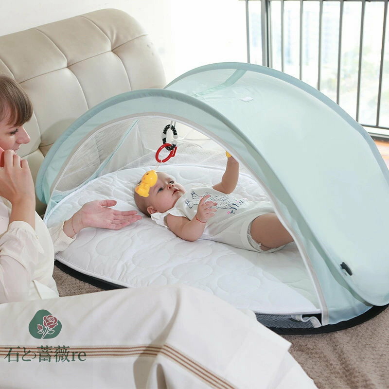 赤ちゃんの快適なお昼寝を守る通気性抜群の折りたたみ式蚊帳 折り畳み簡単で持ち運び便利 出産祝いにも最適