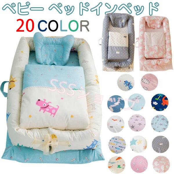 ベッドインベッド ベビーベッド 3点セッ布団付きトベッド まくら 赤ちゃんベッド 20colour ベビーガード 添い寝ベッド 90x50x15cm寝返り防止 持ち運びに便利 出産祝い プレゼント ギフト