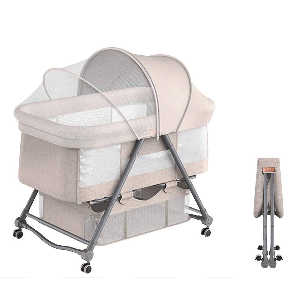 添い寝 ベビーベッド 折りたたみ ベビー お昼寝 ベッド ゆりかご キャスター付き 高さ調節可能 収納 持ち運び便利 コンパクト 赤ちゃん 出産祝い プレゼント 新生児0ヶ月 100*60cm
