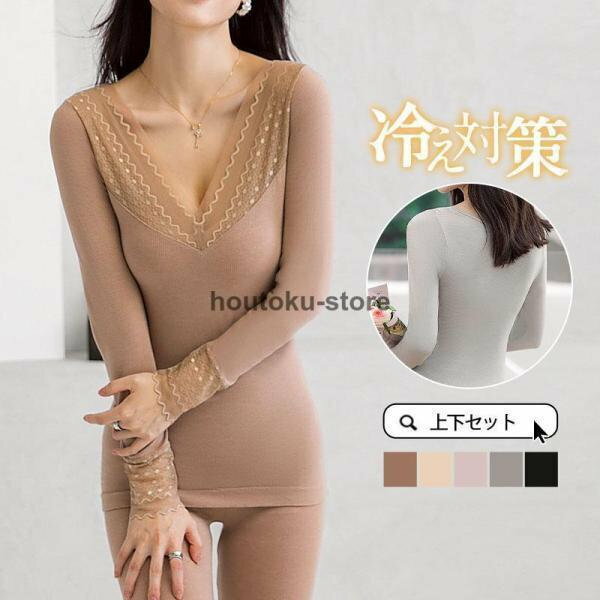 防寒インナー レディース 上下セット点セット シャツ レギパン レース 長袖 秋冬 吸湿 防寒 暖か・・・
