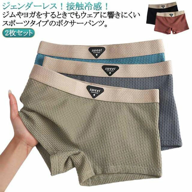 接触冷感ボクサーパンツ 男女兼用 2枚セット スポーツタイプ 快適履き心地 通気性良好