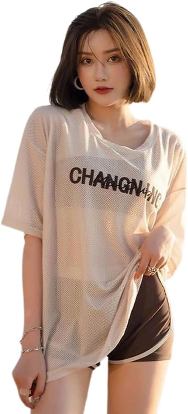 水着 オーバーシャツ スポーツブラ ボクサーパンツ 3点セット レディース スポーツ風 五分袖 通気・・・