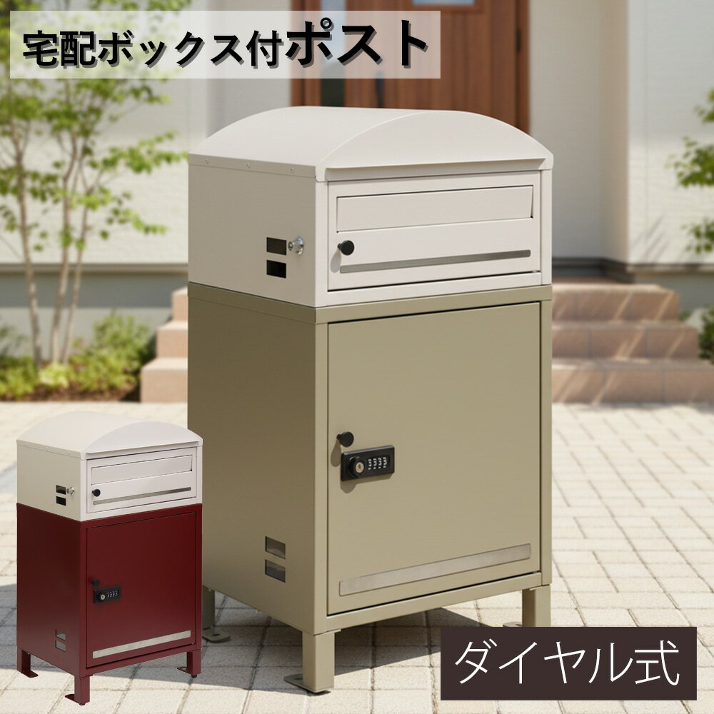 郵便受け+宅配ボックス2段タイプ 鍵付き 最上段シリンダー錠 宅配上段・下段ダイヤルロック おしゃれ 郵便受け付き 宅配ボックス 簡単に設置できる据え置きタイプ