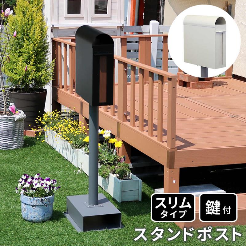 送料無料 ポスト スタンド 前入れ後出し 郵便ポスト スタンドタイプポスト ポストスタンド 置き型郵便ポスト ポールセットポスト 置き型 スタンドポスト 北欧 鍵付 スチール 新聞受け