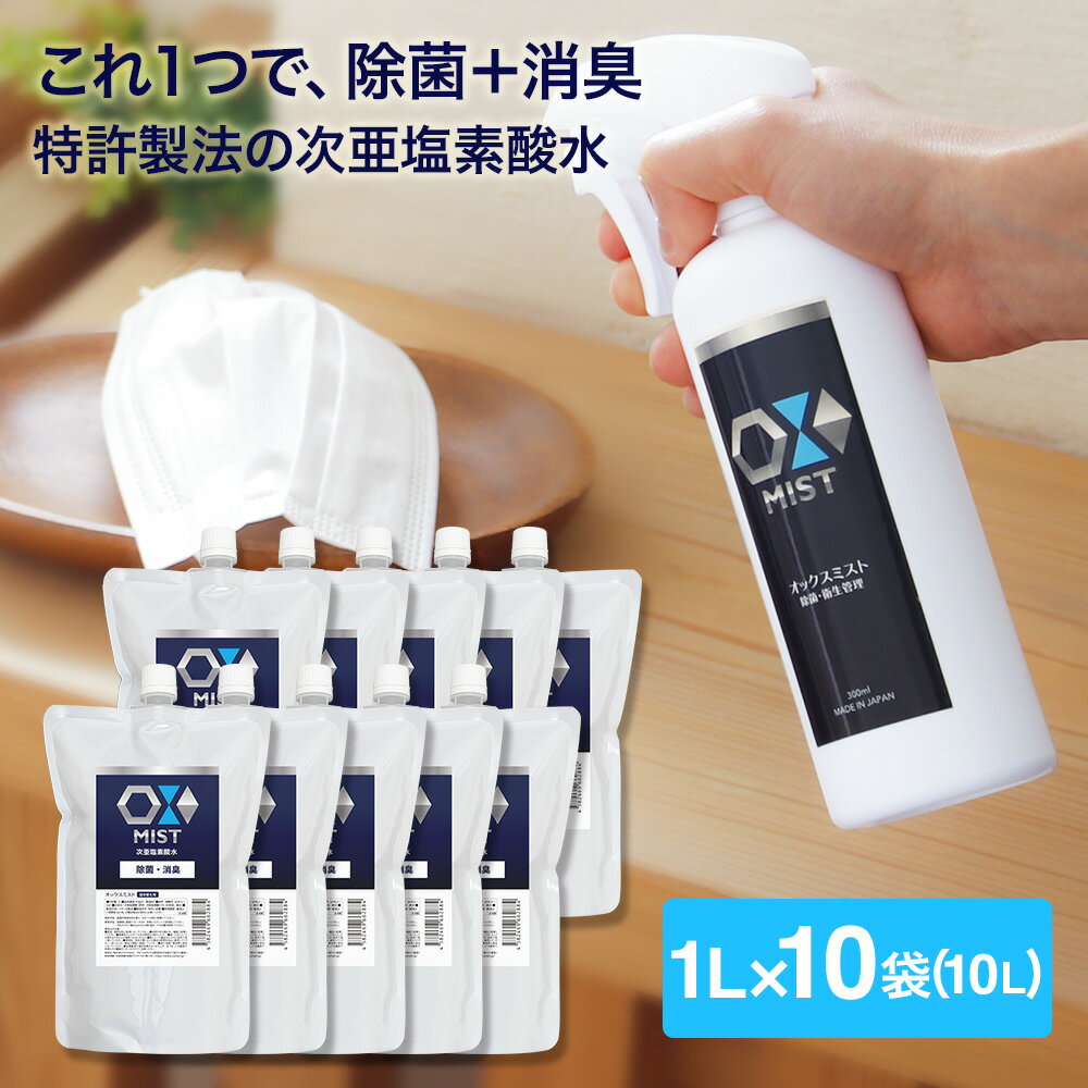 特許製法 次亜塩素酸水 OXミスト オックスミスト 1L×10袋 除菌消臭スプレー 日本製 次亜水 ・・・
