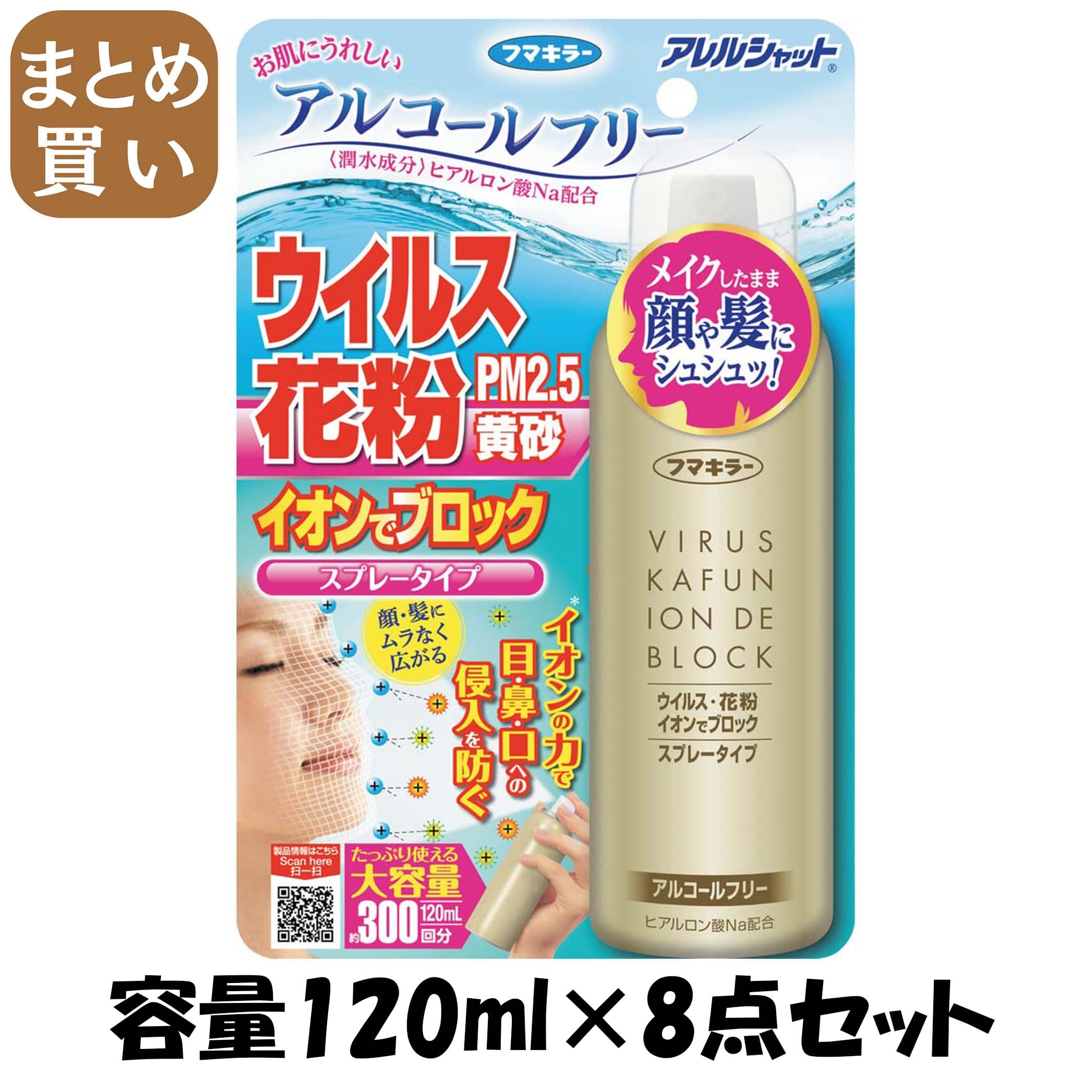 【まとめ買い】アレルシャット ウイルス花粉イオンでブロックスプレータイプ 300回分 容量120ML×8点セット 花粉症用品