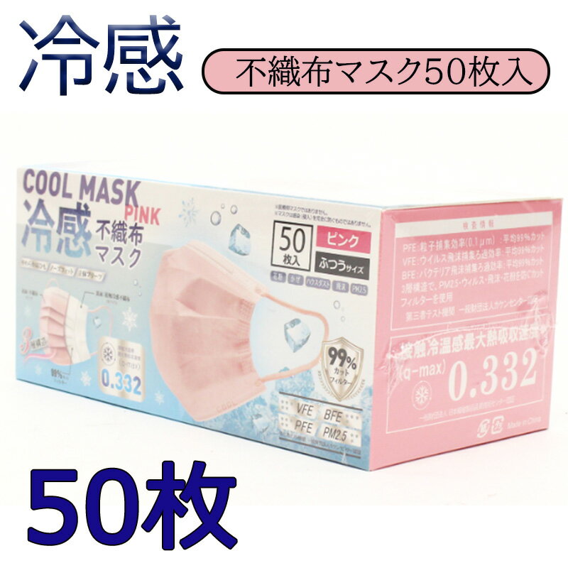 ヒロコーポレイション 冷感 不織布マスク 50枚入 ふつうサイズ( 北海道・沖縄・離島以外) 三層構造 高性能フィルター