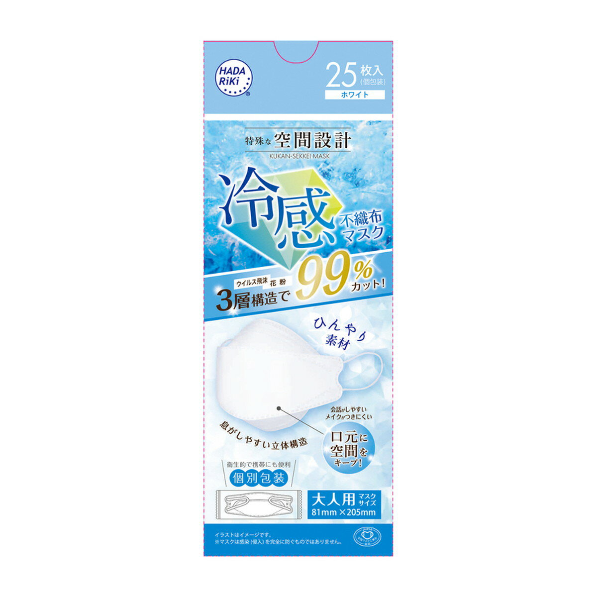 HADARIKI ハダリキ 空間設計 冷感 不織布マスク ホワイト 25枚入・・・