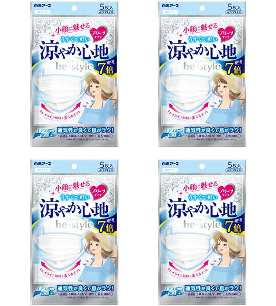 【送料込・まとめ買い×4】白元アース ビースタイル プリーツタイプ 女性用マスク 5枚入×4点セット・・・