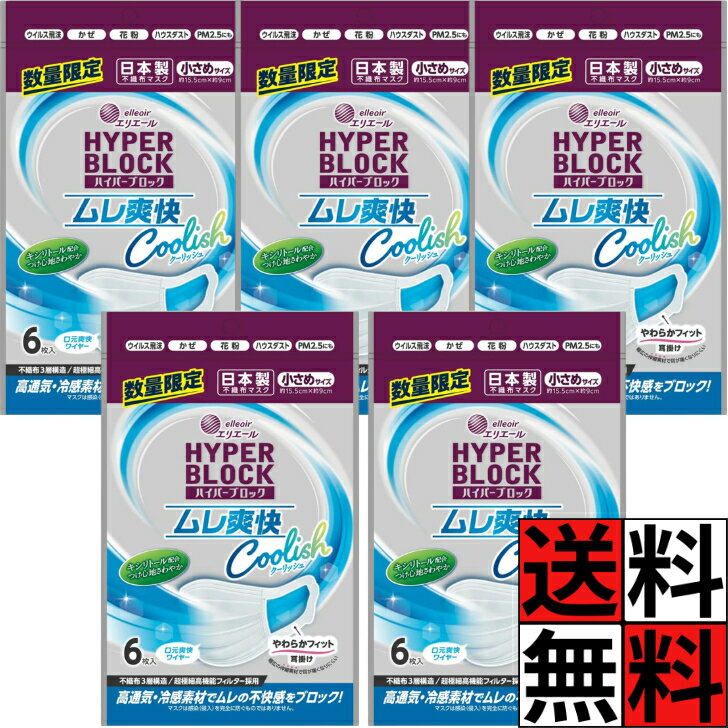 送料無料 エリエール マスク ムレ爽快 小さめ ハイパーブロックマスク 日本製 不織布 花粉 風邪 耳掛け ウイルス ハウスダスト 通気 不快感 冷感 長時間 耳 口元 コロナ クーリッシュ
