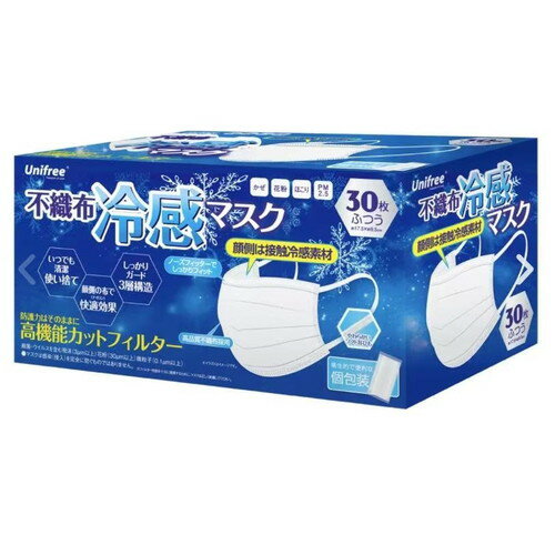 不織布冷感マスク ふつうサイズ 30枚冷感素材でひんやり快適 3層構造マスク 個包装タイプで衛生的・・・
