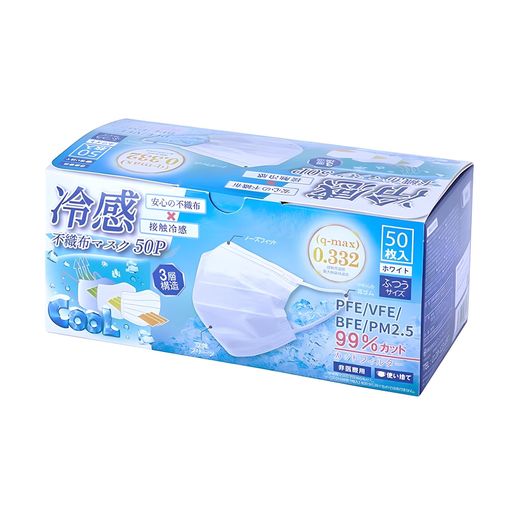 ヒロコーポレイション 冷感不織布マスク 接触冷感 q-max0.332 3層構造 暑い夏に!! ひんやりマスク ホワイト