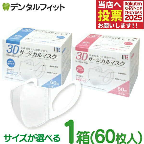 LIFE 3Dサージカルマスク 1箱(60枚) 【マスク 3D 立体 ホワイト 60枚 日本製 レギ・・・