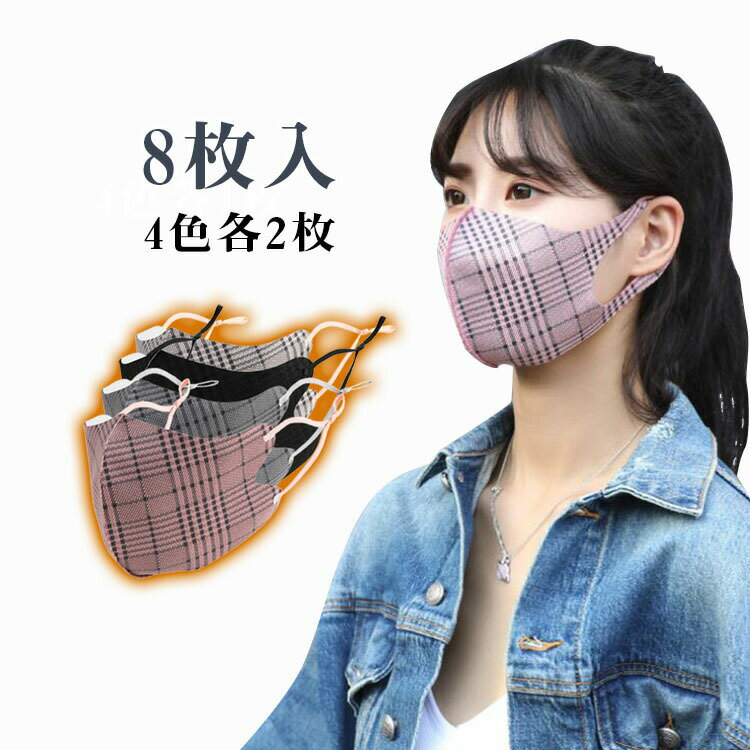 8枚セットマスク冬マスク暖かい送料無料冬用マスク暖かい布マスク洗えるマスクチェックマスク洗える秋冬マ・・・