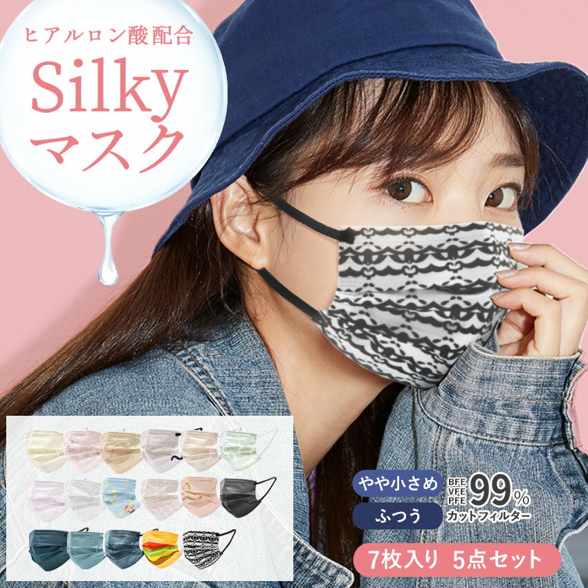 【35枚】不織布マスク ヒアルロン酸配合 7枚×5袋 血色マスク ふつうサイズ やや小さめ 使い捨て・・・