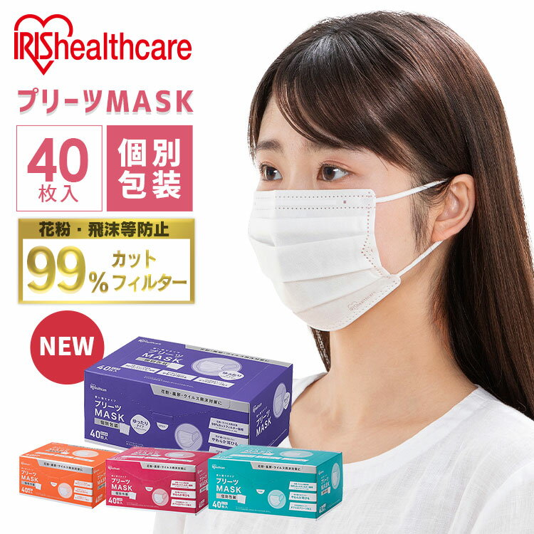 【40枚入】マスク 不織布 個包装 個別包装 アイリスオーヤマ プリーツマスク 小さめ 学童 子ども・・・