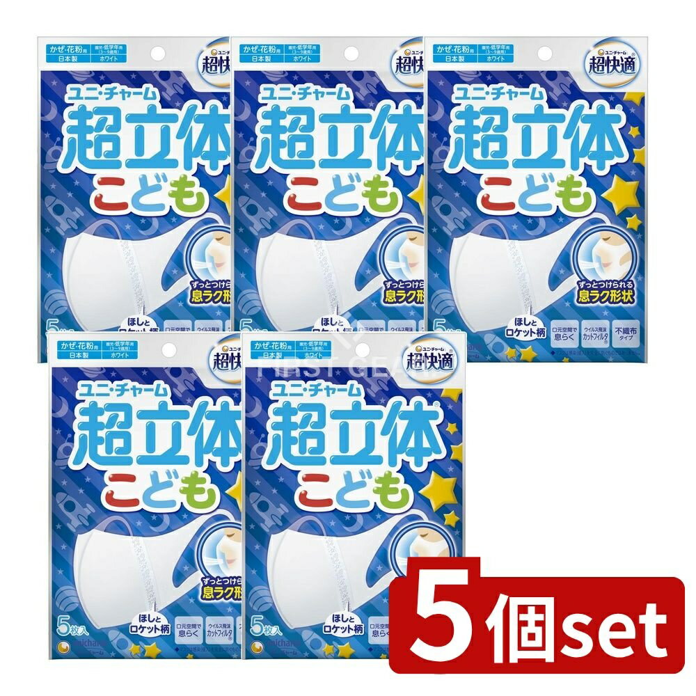 \レビュー特典有/【5個セット】 ユニ・チャーム 超立体マスクこども用 ホワイト [単品内容量/5枚・・・
