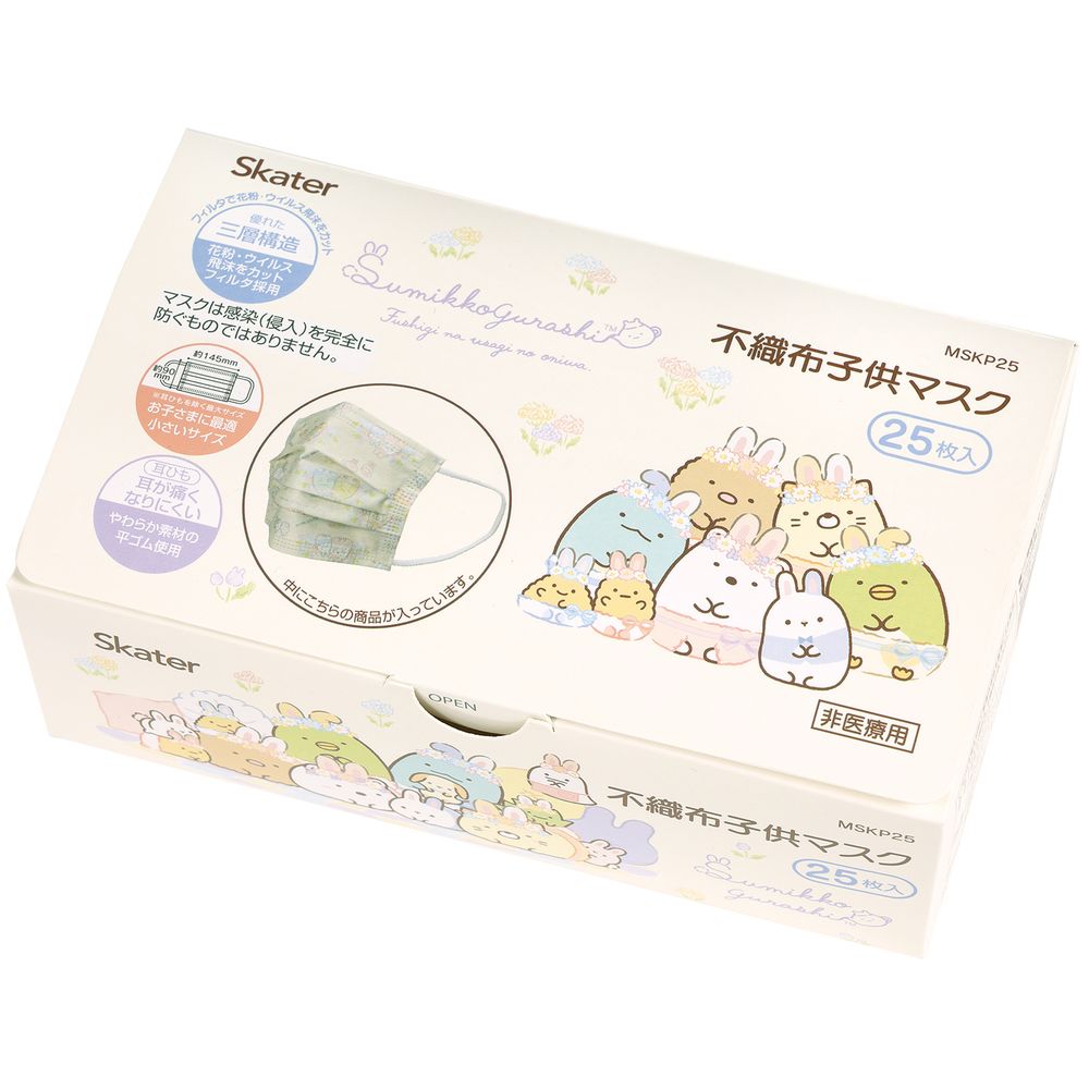 \レビュー特典有/スケーター 不織布子供マスク すみっコぐらし うさぎのおにわ MSKP25 [単品・・・