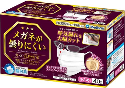 [メディコムジャパン] 不織布マスク メガネが曇りにくいマスク 小さめサイズ 個包装 40枚入 使い・・・