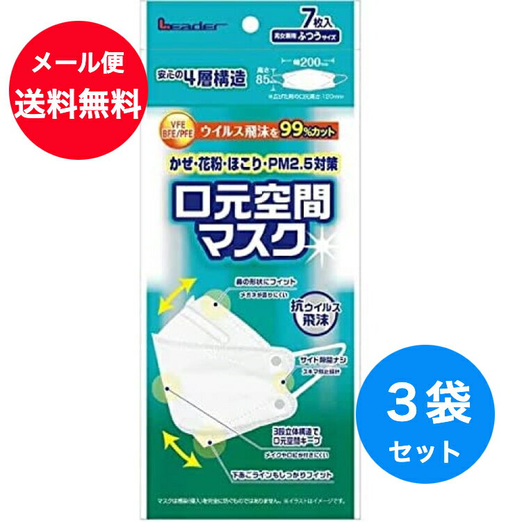 【メール便で送料無料 】日進医療器 Leaderリーダー 口元空間マスク 男女兼用ふつうサイズ 7枚・・・