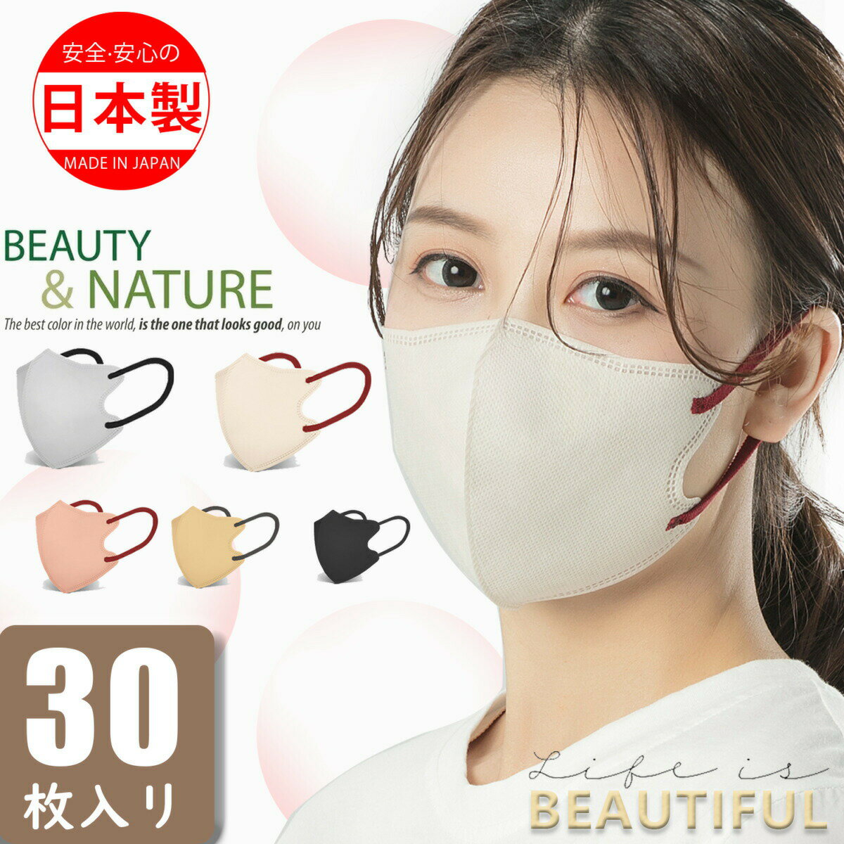 花粉症 風邪 日本製 バイカラー30枚人気3d立体型マスク 学童 マスク 普通サイズ・子供サイズ プ・・・
