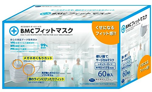 BMC フィットマスク 使い捨てサージカルマスク レギュラーサイズ 60枚入・・・