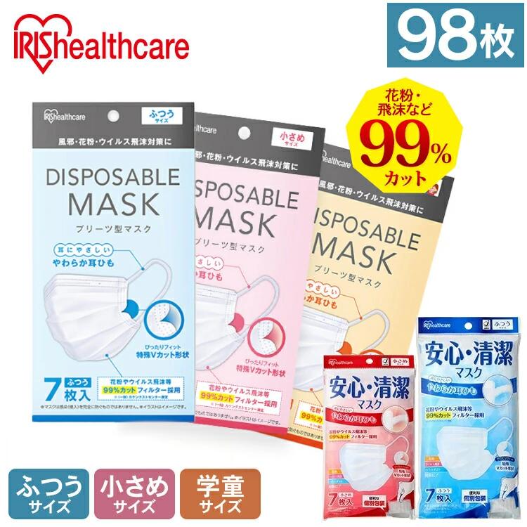 マスク 不織布 アイリスオーヤマ 不織布マスク 98枚 7枚入×14個送料無料 使い捨て ふつう 小・・・