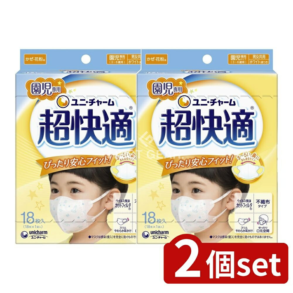 \レビュー特典有/【2個セット】 ユニ・チャーム 超快適マスク園児専用タイプ [単品内容量/18枚]・・・