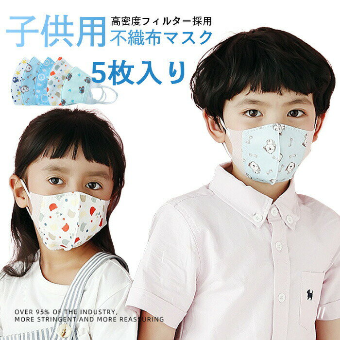 送料無料マスク あり 子供用 夏 5枚入 キッズ 不織布マスク 使い捨てマスク フェイスマスク 家庭・・・